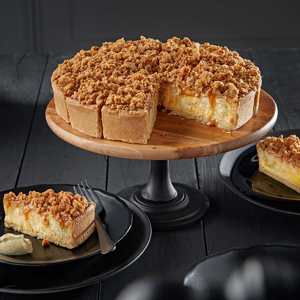 The ultimate Caramel Apple Pie with a butter-enriched shortcrust pastry loaded with chunks of Bramley apple and a layer of rich and creamy custard. Finished with a delicious topping of sweet gooey caramel, with rustic brown sugar crumble. Pre-portioned for convenience..