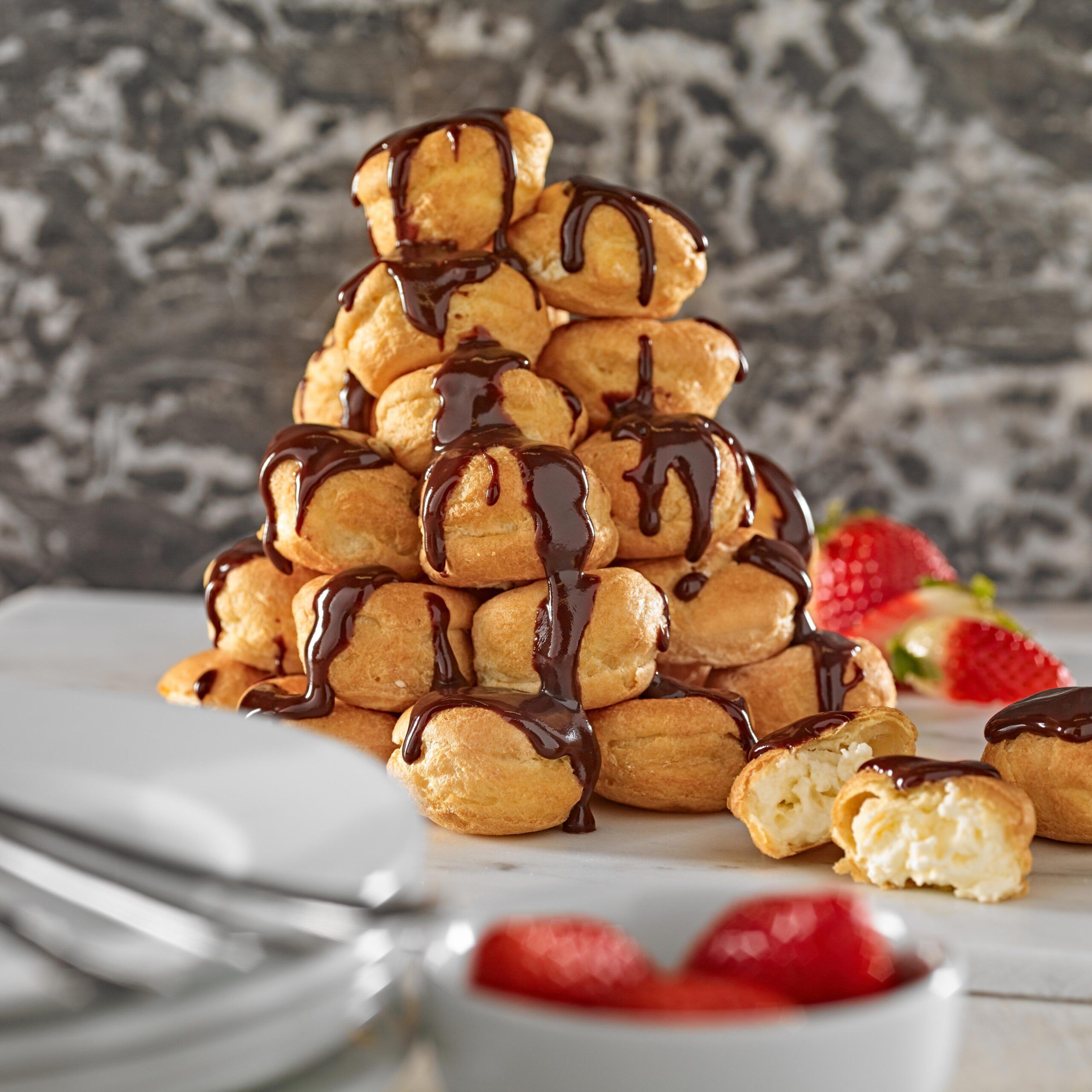 Cream Filled Profiteroles with Chocolate Sauce