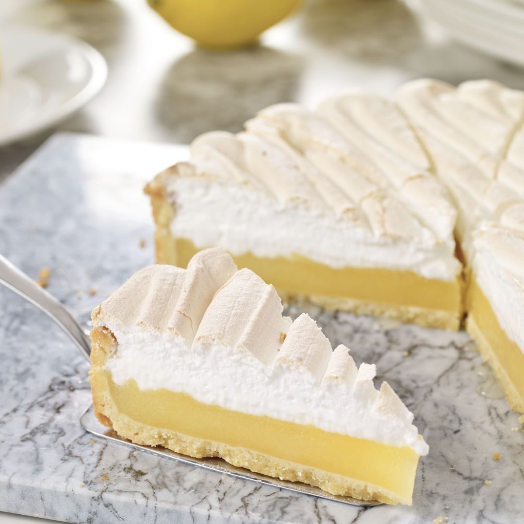A blind-baked pastry case filled with a tangy lemon custard topped and finished with an Italian style Meringue