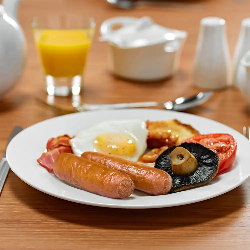 Packed, 2 x 2.27kg, the box contains individually quick-frozen (IQF) sausages available in 4’s, 8’s, 16’s and 32’s. Simply fry, grill, griddle, or oven bake until thoroughly heated to 72°C before serving.