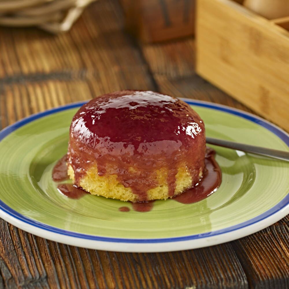 Moist golden Sponge Pudding, topped with a fruity Strawberry Jam Sauce. 12 Individual Puddings.