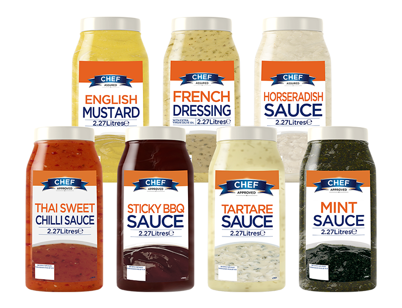 The latest additions to the CHEF Approved sauce range includes eight essential condiments designed for high-volume catering. From English Mustard and Horseradish for traditional roasts, to Thai Sweet Chilli and Sticky BBQ for contemporary menus, the range covers the core flavours professional kitchens use every day.